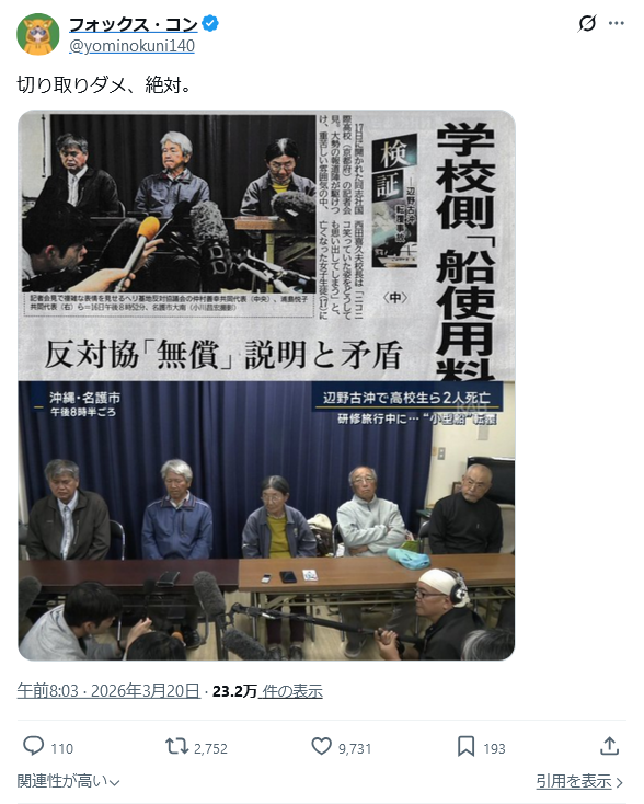 米国のトランプ大統領は19日の日米首脳会談冒頭、イランに対する軍事作戦を同盟国に事前に知らせなかった理由を記者団から問われ「奇襲を仕掛けたいと考えていたため、誰にも話さなかった」と語り、奇襲によりイランへの攻撃が成功したと主張した。トランプ氏は「奇襲について日本ほどよく知っている国はあるだろうか」と述べ、さらに「なぜ真珠湾攻撃のことを教えてくれなかったのか」と軽口をたたくと、同席した米側の閣僚らから笑い声が上がった。米紙ニューヨーク・タイムズは、歴代の米大統領が日米の関係構築のため、旧日本軍による1941年の真珠湾攻撃の話題を慎重に扱ってきた経緯を紹介。「(トランプ氏は)外交上の慣例を軽視している」と報じた。https://news.yahoo.co.jp/articles/4b2c538834533da0cb6fc864952600f427cb1f74