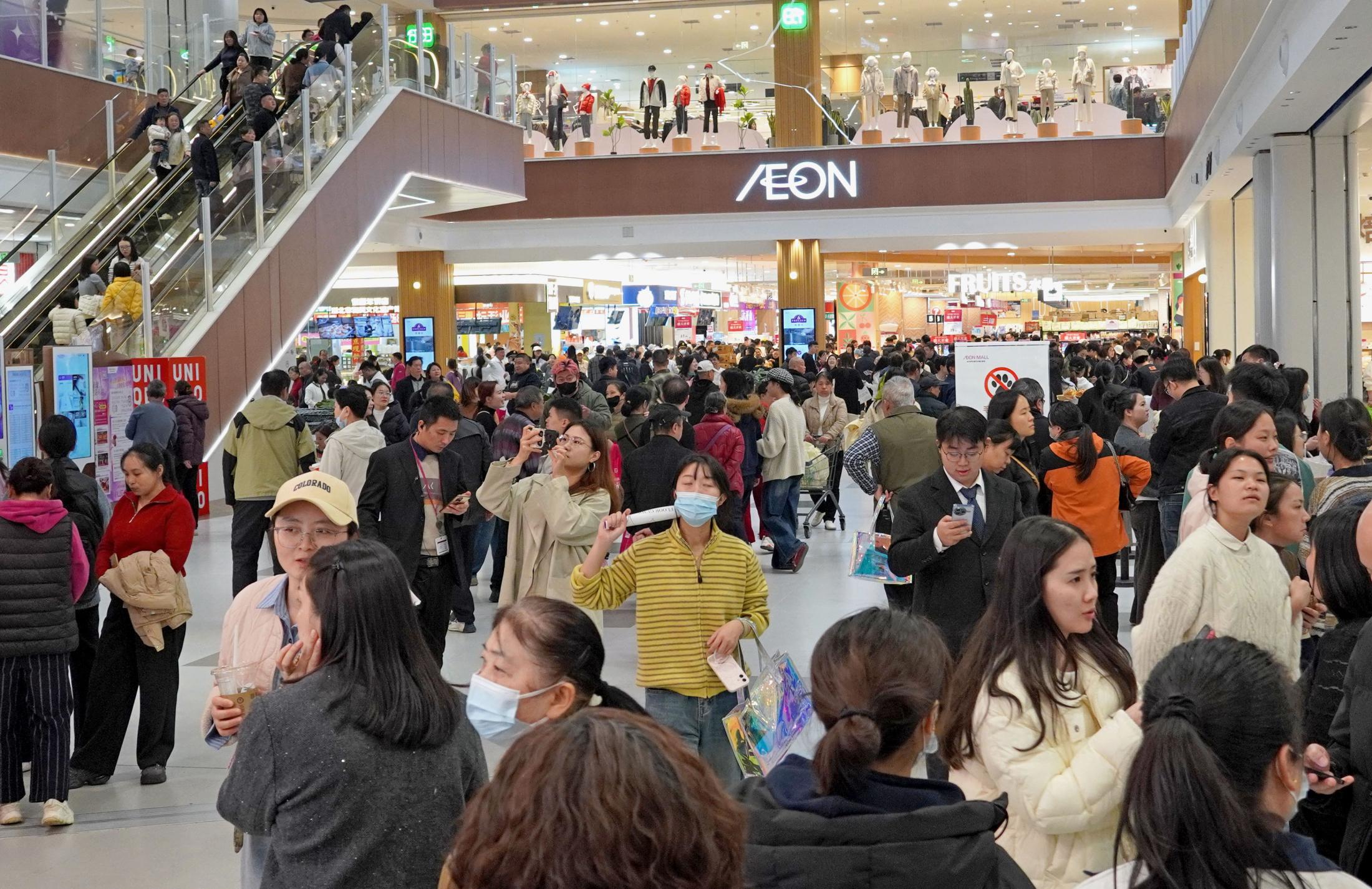イオンは27日、中国湖南省の省都長沙市に大型ショッピングモールを開業した。湖南を重要エリアに位置付け、成長余地が残る中国内陸部で今後、出店を加速させる。日中関係は、高市早苗首相の国会答弁をきっかけに緊張が高まっているが、開業初日は大きな混乱はなく多くの地元客が買い物や食事を楽しんだ。新店は「イオンモール長沙湘江新区」で、延べ床面積は23万6千平方メートル。「ユニクロ」や「無印良品」といった小売店に加えて、映画館やアミューズメント施設などを誘致し、一日楽しめるよう工夫した。長沙では夜間の消費活動が活発で、未明まで営業する一角も設けた。https://news.yahoo.co.jp/articles/c821d34d4f87f76bb6da0309dd3a947d9be949e6