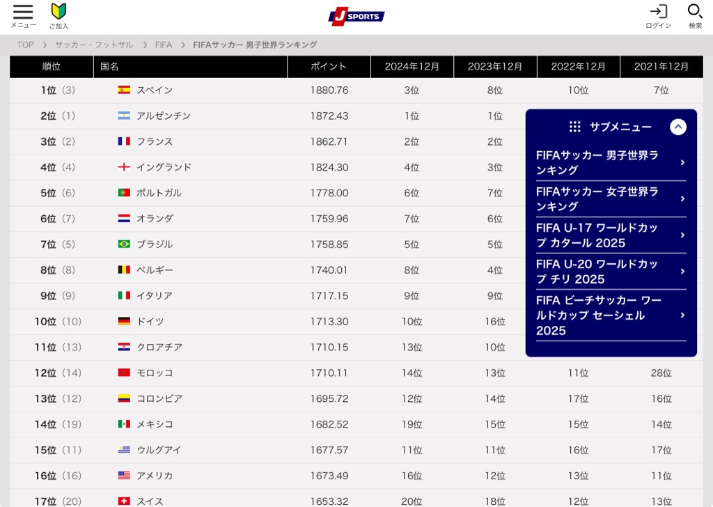 国際サッカー連盟(FIFA)は19日、最新のFIFAランキングを発表した。日本時間12月6日に行われる『FIFAワールドカップ26組み合わせ抽選会』前最後のFIFAランキングが決定。ガーナ代表とボリビア代表を撃破し、無失点での連勝で2025年を締め括った日本代表は、前回の19位から1つランキングを上げて18位に。ポット2の一角として組み合わせ抽選会に臨むことが濃厚となった。ポット2にはFIFAランクの上位10~21カ国が入る見込みで、プレーオフ組の扱いが未確定ながら出場確定国の中で16位に位置する日本は、ポット2に入ることが決定的に。https://news.yahoo.co.jp/articles/cdd451be6285f20ee36262adfb418b5a9232a3b4