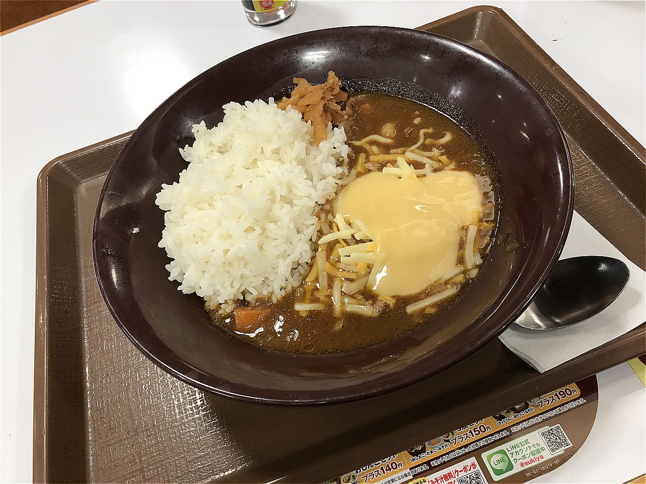 青森よりも函館の方が寒いのがとてもよくわかります。函館フェリーターミナルから30分くらい歩いて五稜郭駅へ向かいます。駅近くの国道沿いにあったすき屋でカレーを食べました。チーズもトッピング!