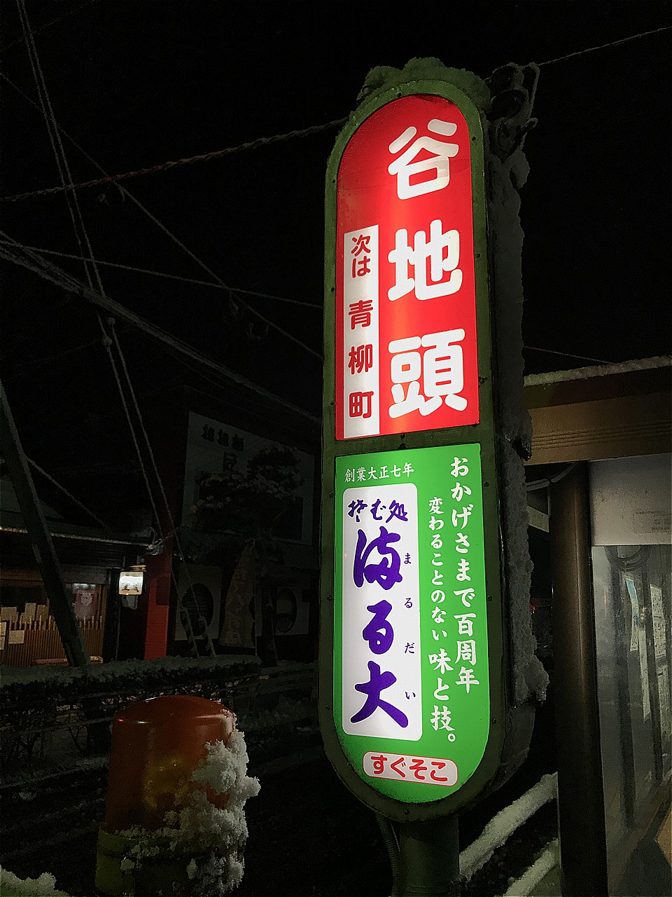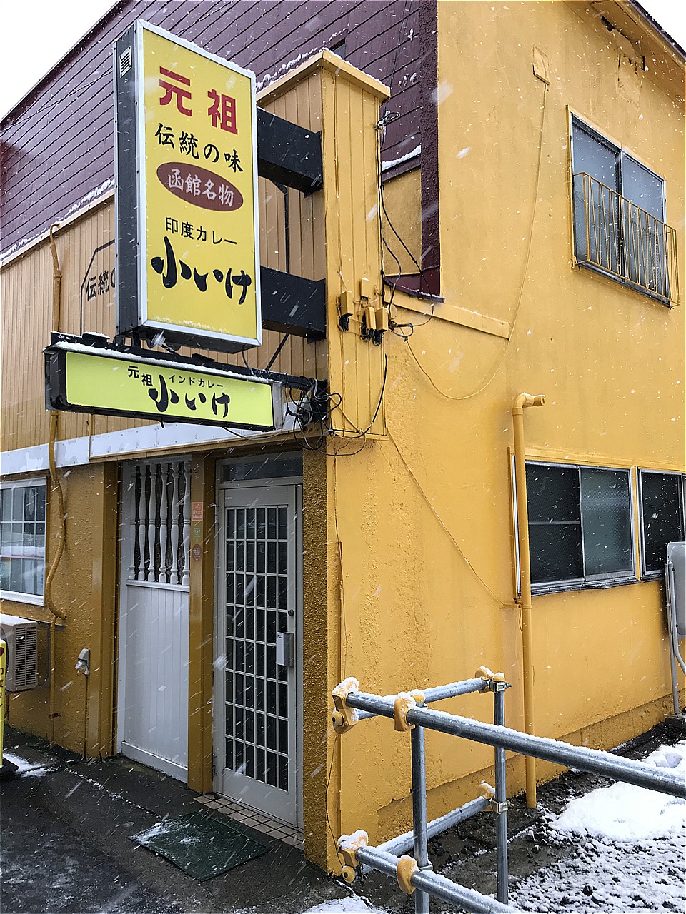 お昼も過ぎ、腹が減ってきたので昼食を。函館市電に乗って十字街という駅で降ります。やべー、雪が降り出した・・・。