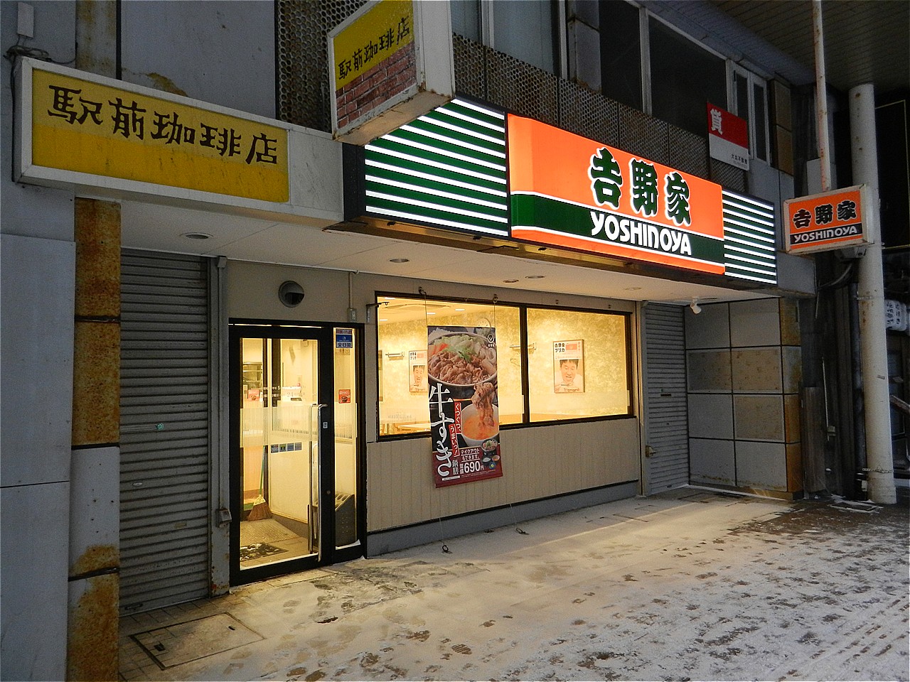 この時間だと開いている店も少ない朝ご飯は駅前の吉野家で