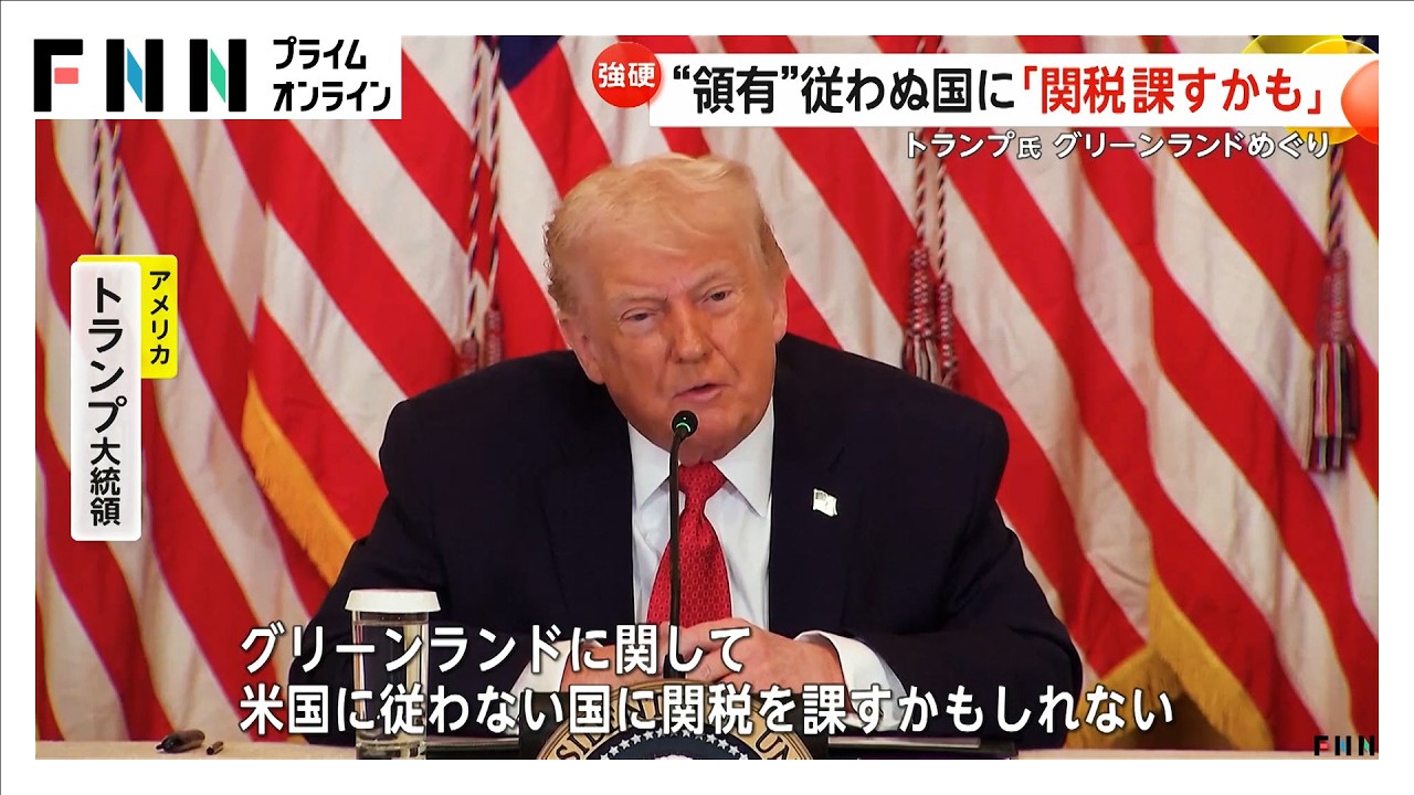 米国のトランプ大統領は17日、米国によるデンマーク自治領グリーンランドの領有に反対し軍を派遣した欧州の8か国を対象に2月1日から「10%の関税を課す」とSNSに投稿した。今年6月1日には関税率を25%に引き上げ「グリーンランドの完全かつ全面的な買収に関する合意が成立するまで支払い義務が生じる」としている。トランプ氏が挙げた8か国は、デンマークのほか、ノルウェー、スウェーデン、フランス、ドイツ、英国、オランダ、フィンランド。SNSでは「中国とロシアはグリーンランドを狙っており、デンマークにはどうすることもできない」とした上で、8か国が「危険なゲームに興じ、リスクを招いている」と主張。https://www.yomiuri.co.jp/world/20260118-GYT1T00058/