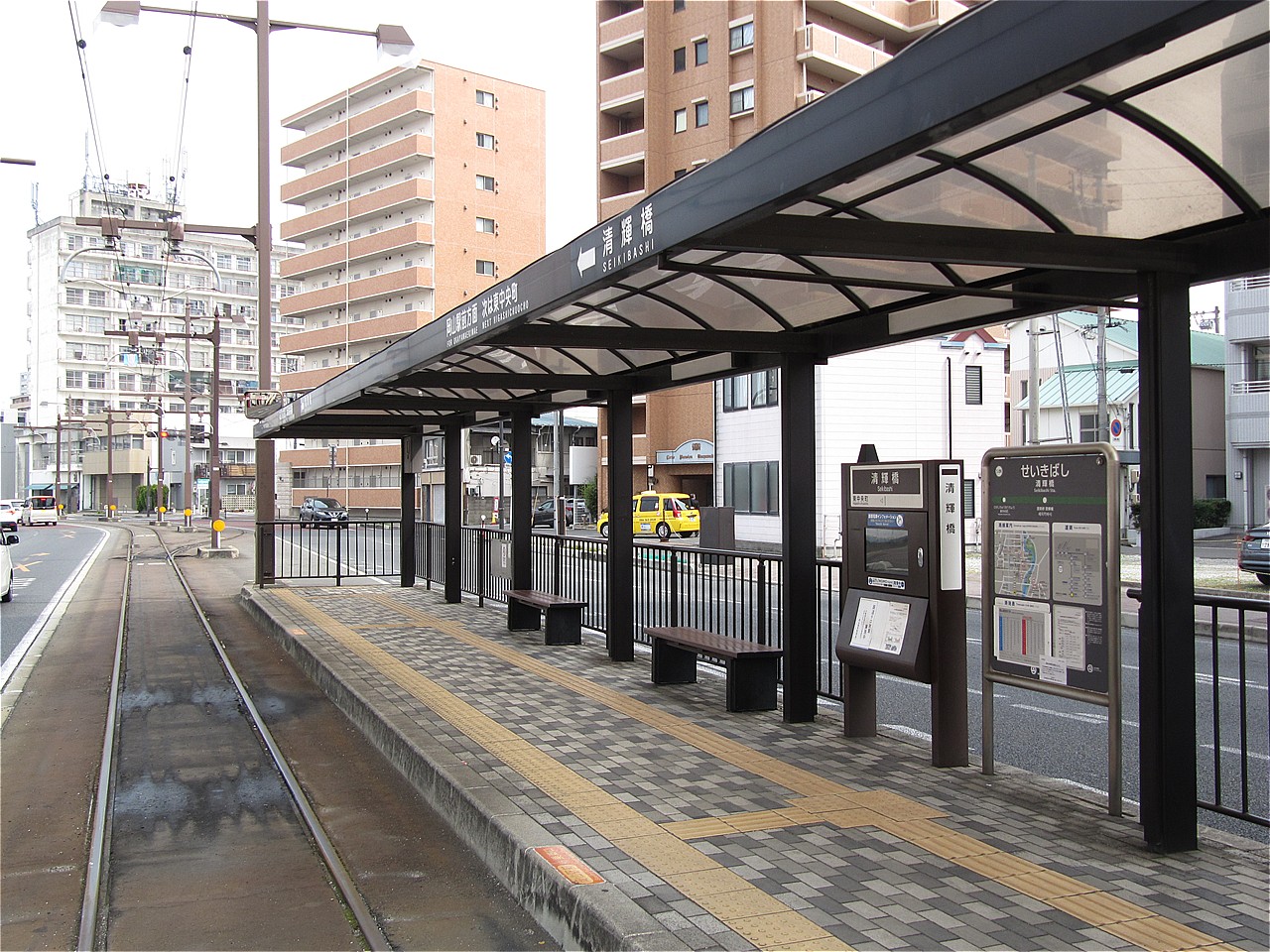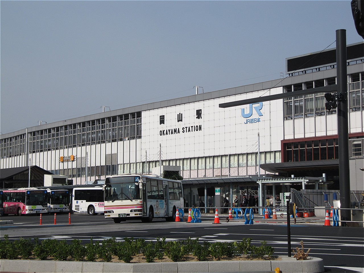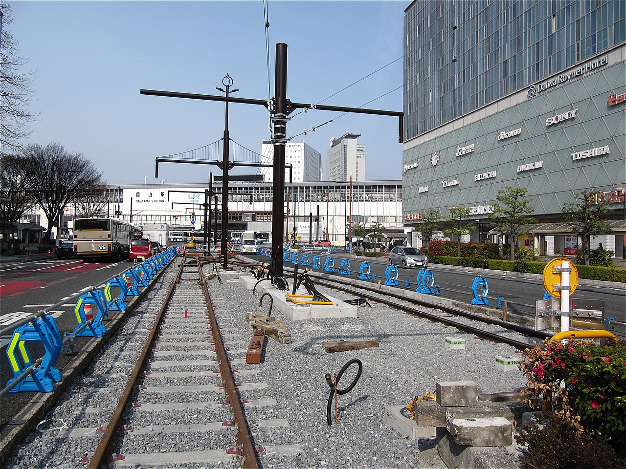 オイラは路面電車の走る街が大好きなので乗ってみました駅前にあったバス案内所で1日乗車券を買って乗り場に向かいます岡山駅のすぐ近くまで乗り入れる工事中